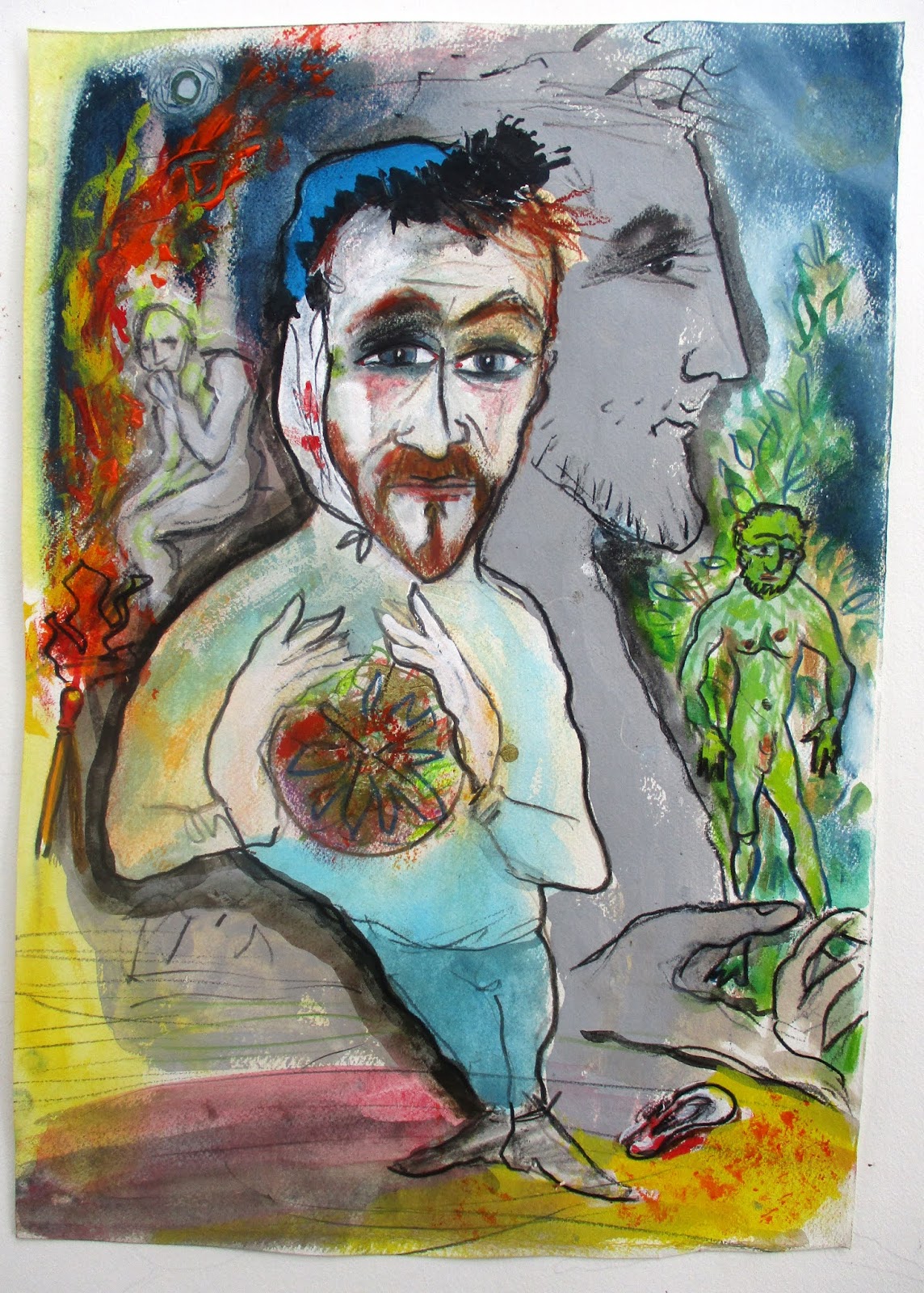 | King Thackston, Thinker,Stoic & Greenman - as Vincent Van Gogh, holds a mandala |